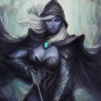 Drow Ranger. She is depicted in a fantasy-themed setting with