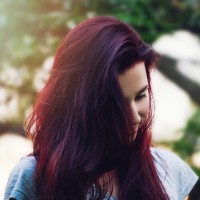 a contemplative mood. She's wearing a light-colored shirt, suggesting it might be outdoors given