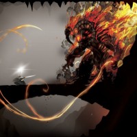 presence in the series. In the center, there is a creature that could be identified as a Balrog due to its characteristic appearance; it is dark with fiery eyes and is often associated with
