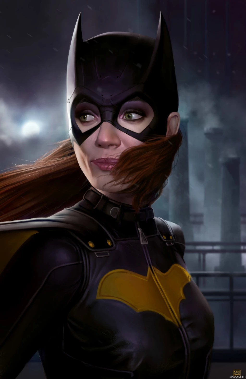 an urban environment, which aligns with Batgirl's role as a vigilante crimefighter in Gotham City.