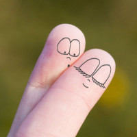 The image shows two hands holding each other with the fingers interlocked. On one hand, there appears to be a drawing of two stylized stick figure-like characters, which could suggest a relationship or connection between them.