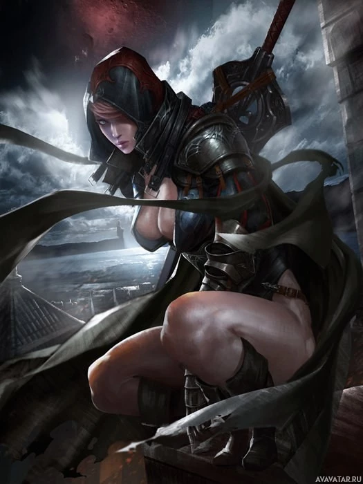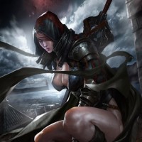 ominous environment, possibly a battlefield or ruins. The style of the artwork suggests it could be related to fantasy or