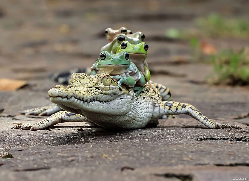 крокодилы | Скачать аватары с крокодилом | Crocodiles | Лягушки верхом на спине крокодила
