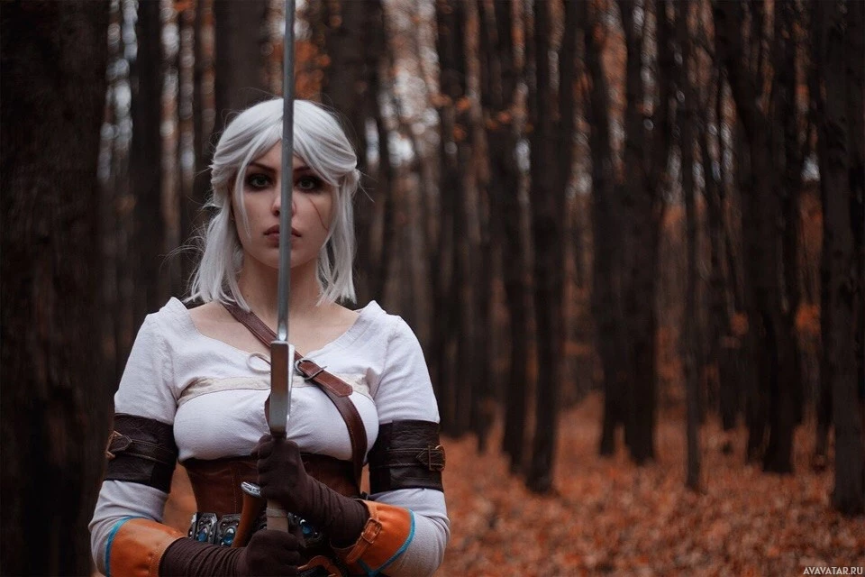 The image features a character that appears to be Ciri, a fictional character from