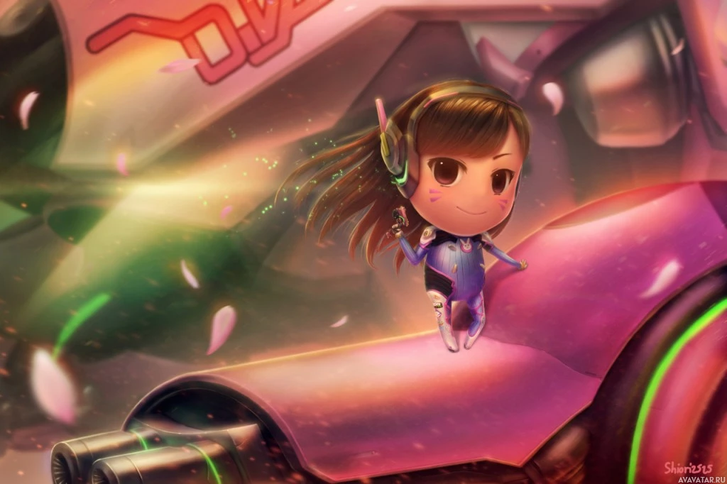 This image depicts an illustration of D.Va, a character from the popular multiplayer