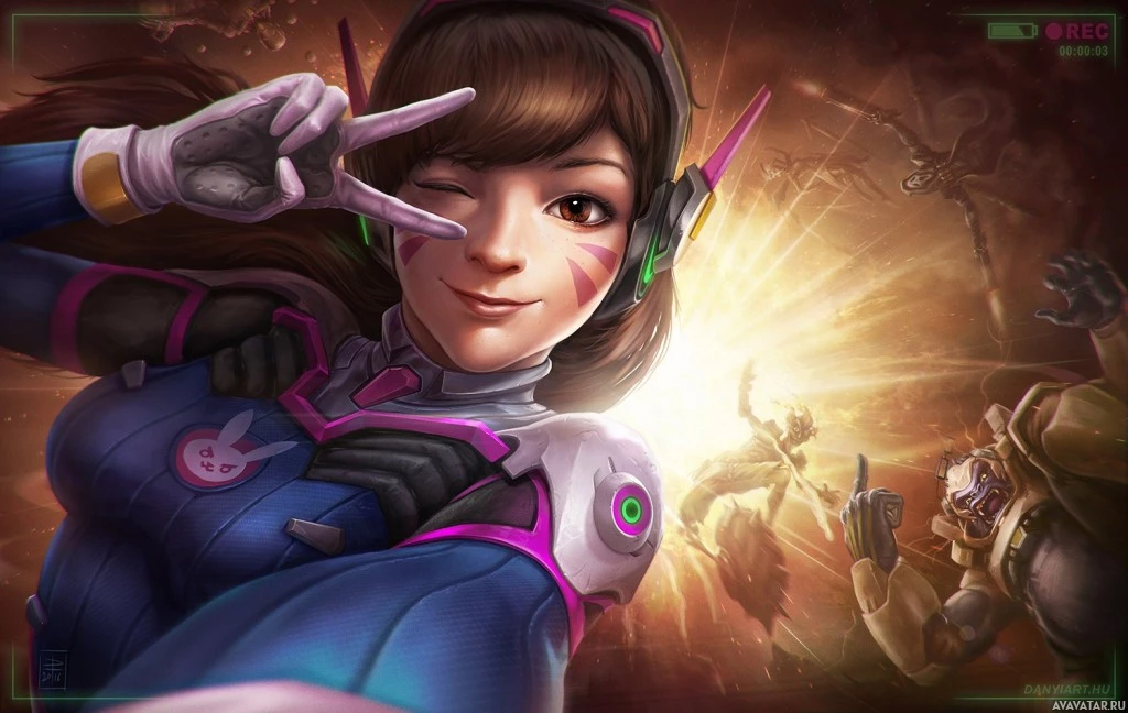 video game "Overwatch," known by her in-game name D.Va. She is depicted as