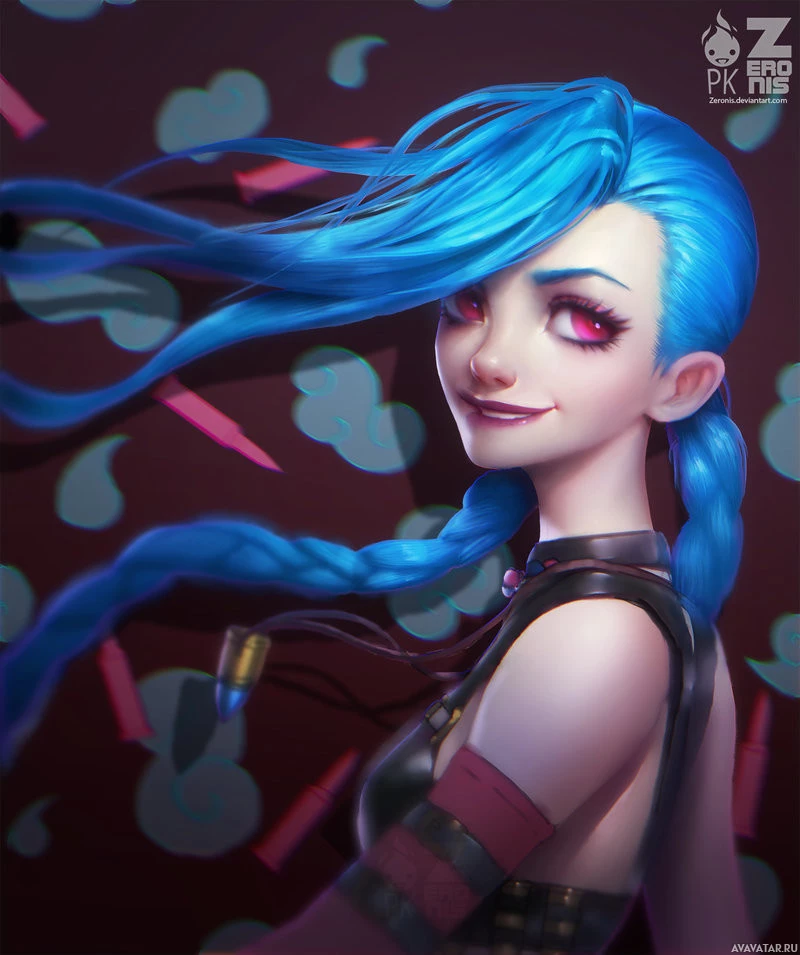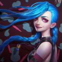pop culture or music-related elements. The character appears to be drawn in an art style that might be associated with games such as "League of Legends," where a character named Jinx is known for having