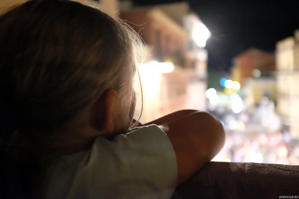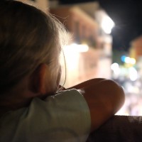 The picture shows a young child looking out of