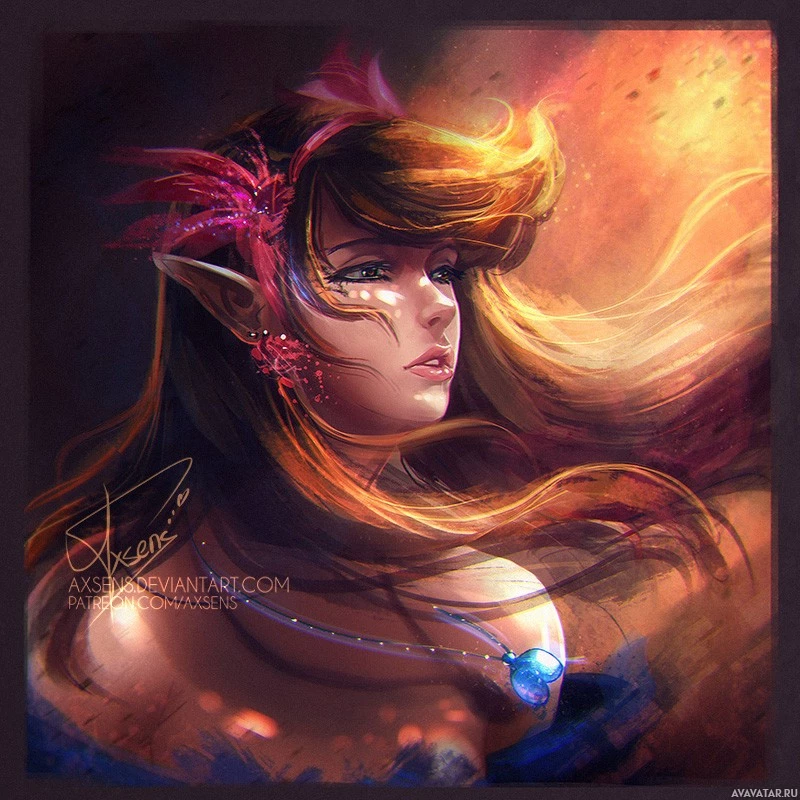 a fantasy character who appears to be an elf with red hair. She is wearing what seems to be some