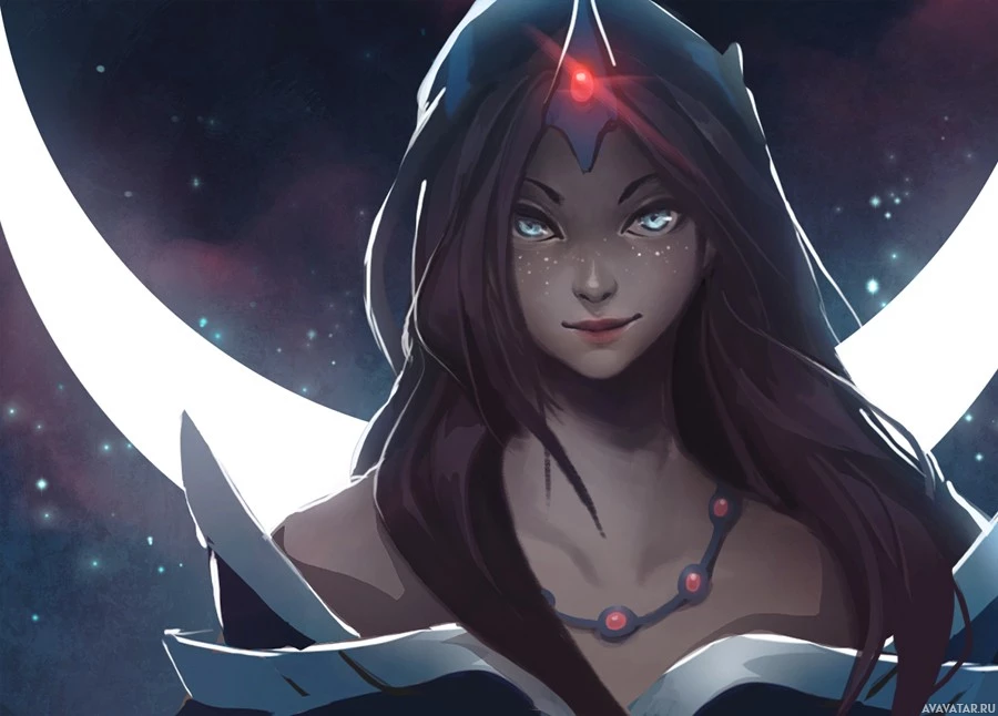 The image features a character from the game Dota 2. This character is known as Mirana, a popular support hero in the game. She is depicted with her distinctive blue skin and large ears, which are typical of her design within the game.