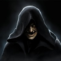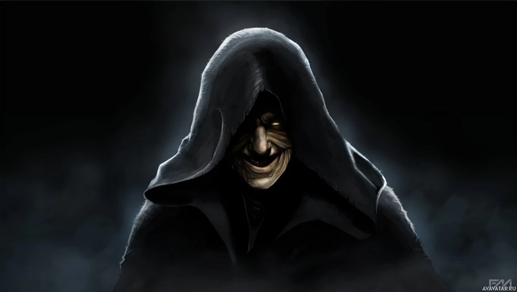 Star Wars" franchise, known as Emperor Palpatine. He is depicted with his hood up, which is iconic to his portrayal in the series, particularly in