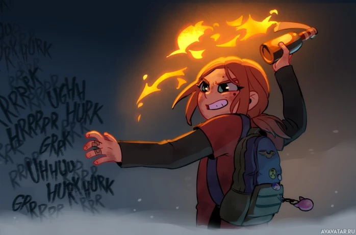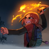 the video game "The Last of Us." She is depicted with her hair on fire and