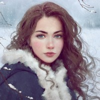 snowy landscape with bare trees, enhancing the wintry atmosphere of the scene. The overall style of the artwork appears to be a digital painting with a focus on realistic details and soft,