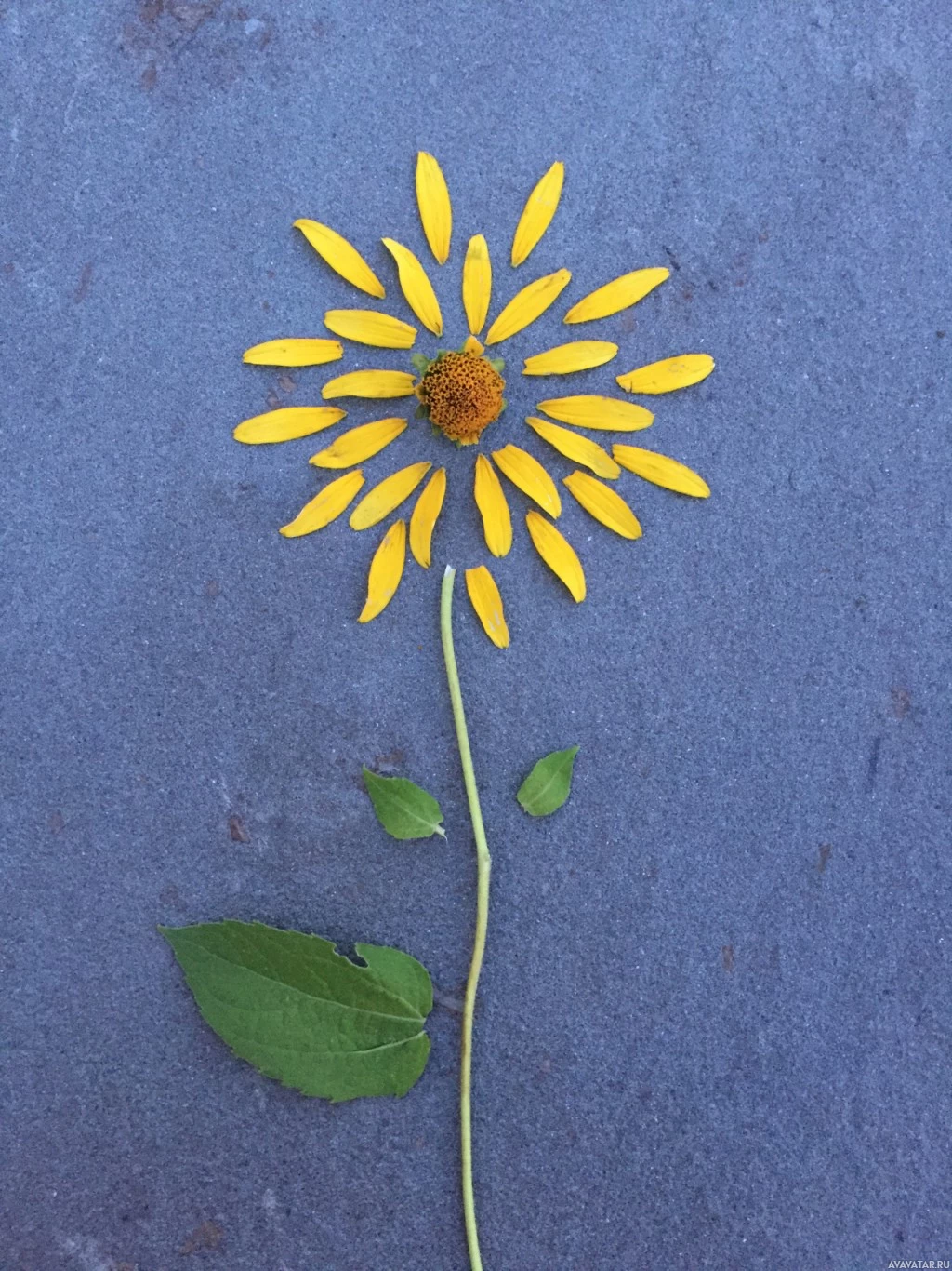 На картинке изображена одна желтая ромашка с зеленым стеблем и двумя листьями слева от цветка. По-видимому, он расположен на серой поверхности, возможно, бетонной или каменной, так как вокруг него нет видимой почвы. Общее впечатление — это простота и природная красота.