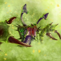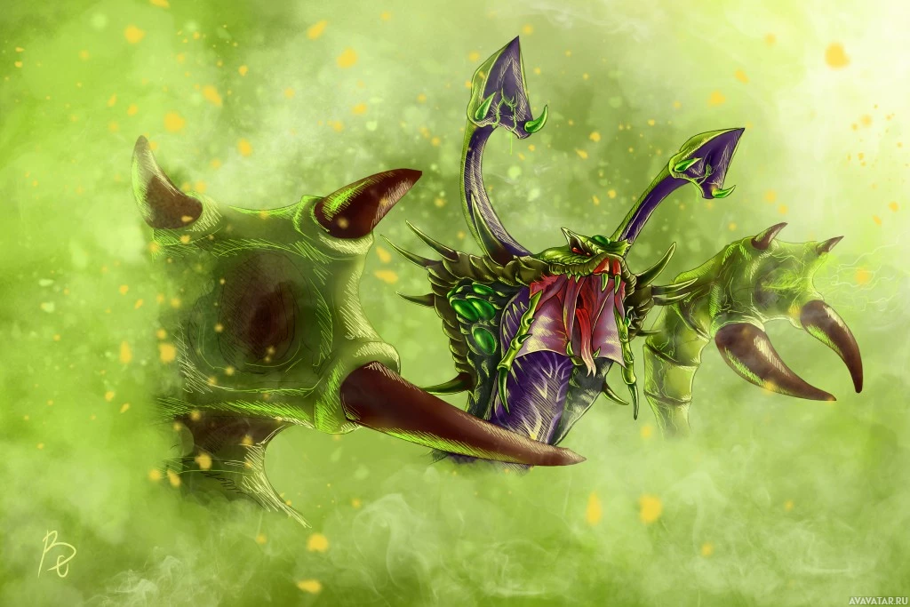 The image depicts a character from the game "Dota 2," specifically known as Venomancer. This character is typically associated with green and purple color themes, often representing poison or venomous qualities due to their name. The character is shown in