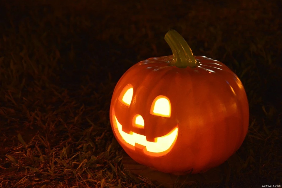 На картине вырезана тыква со страшным лицом, часто ассоциирующаяся с празднованием Хэллоуина. По-видимому, он расположен на темном фоне, возможно, ночью. Освещенный фонарь джек-о'- является центральным фокусом изображения и вызывает классическую символику празднеств Хэллоуина.
