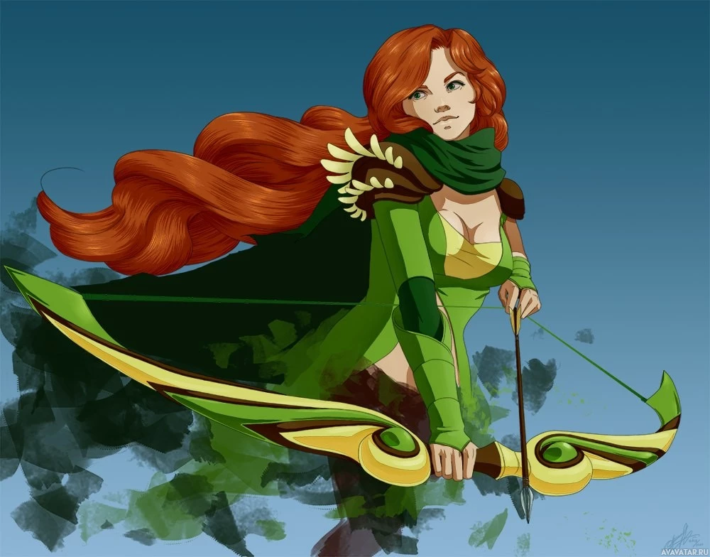 an animated character known as Windranger from the game Dota 2. She is a heroine with long