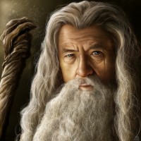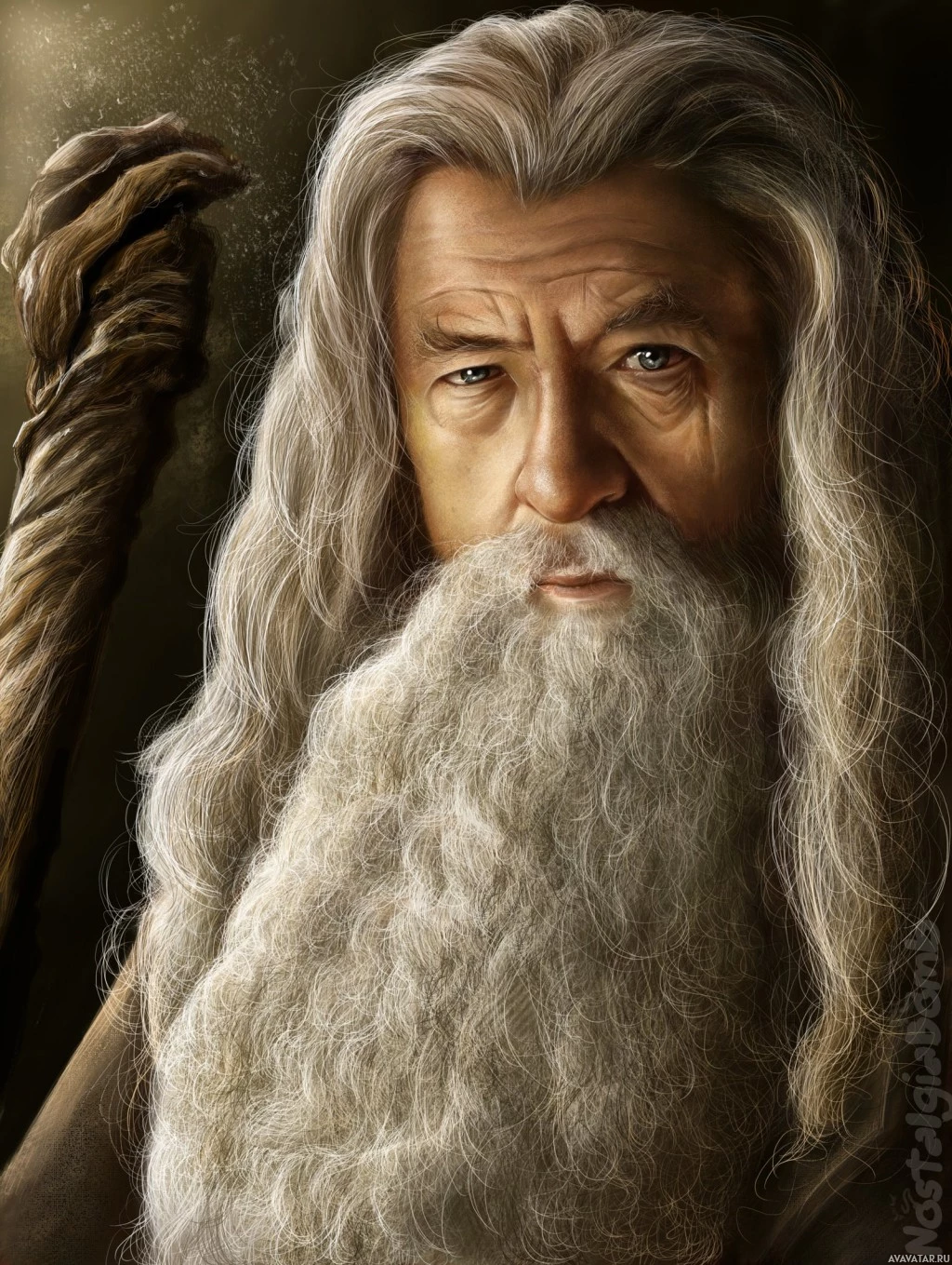 This image depicts a character known as Gandalf from the Middle-earth universe, which is most famously portrayed in the "