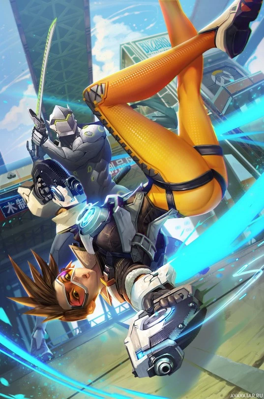 the video game Overwatch, specifically Tracer. The character is shown in