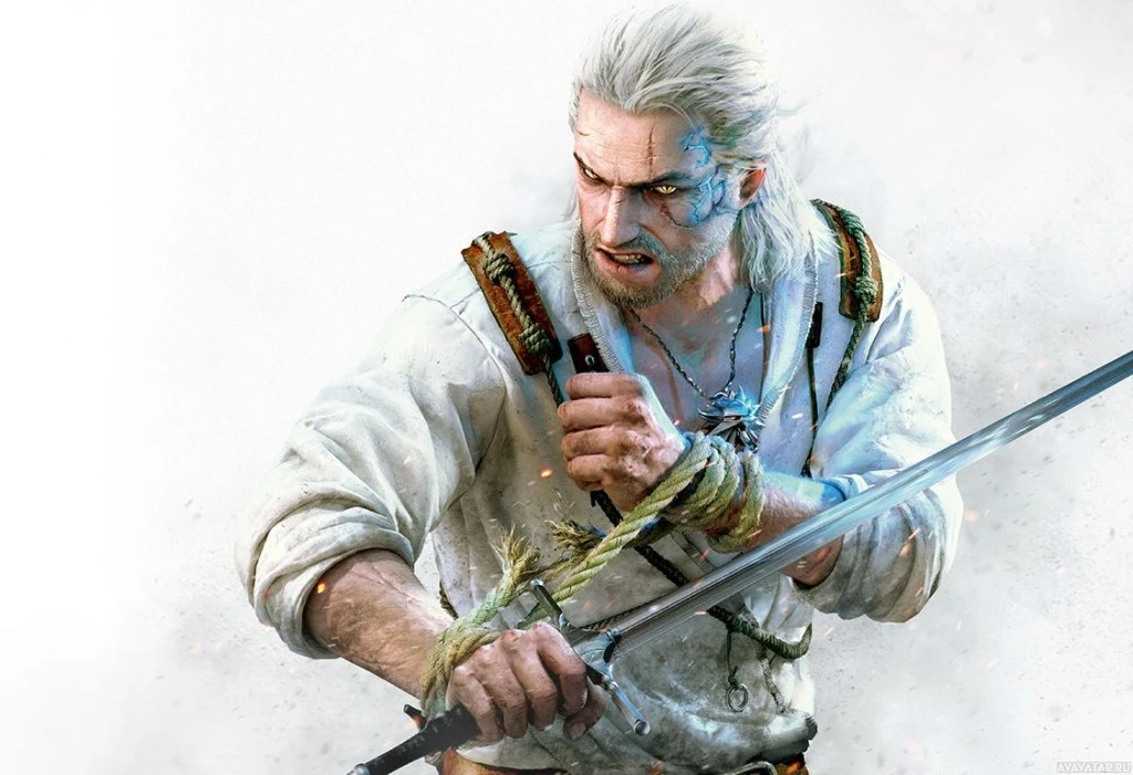 Картинка показывает персонажа из игры «Ведьмак». Это Геральт из Ривии, охотник на монстров, известный своими навыками и различными способностями, которые помогают ему в борьбе со сверхъестественными существами.