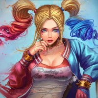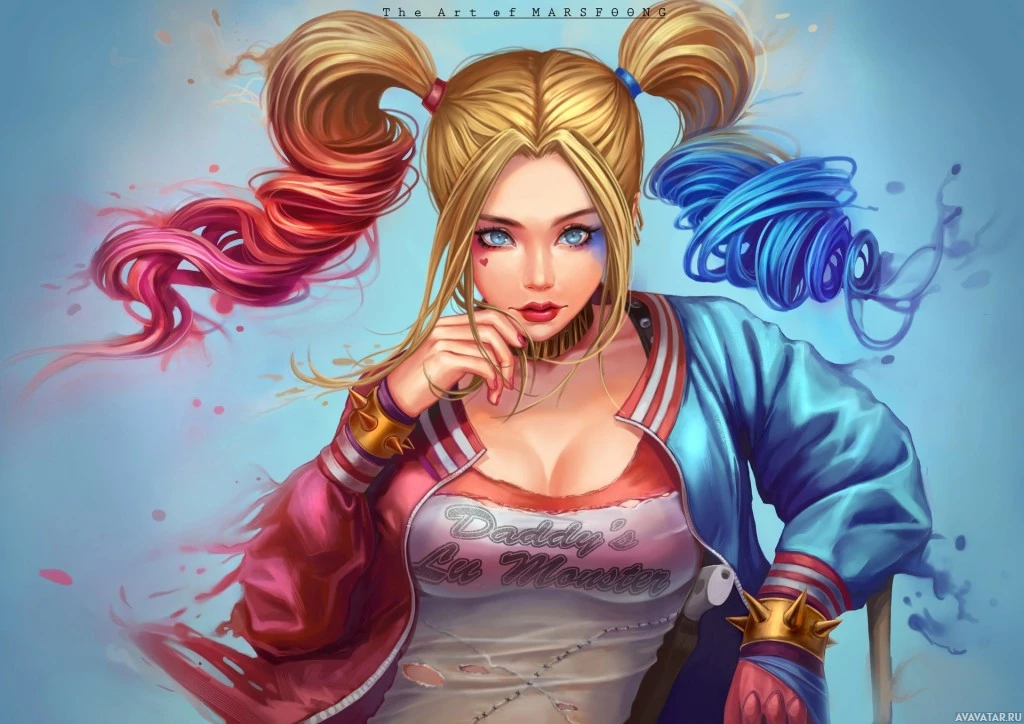 Harley Quinn, a fictional character from the comics and media of the DC Comics universe, most famously portrayed by actress Margot Robbie in the movies "Suicide Squad" and "Birds of Prey." The image does not feature any text.