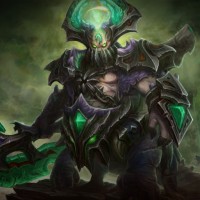 the game Warcraft. This character is wearing armor with green accents and is wielding a large sword, which is often associated with strength and combat prowess in