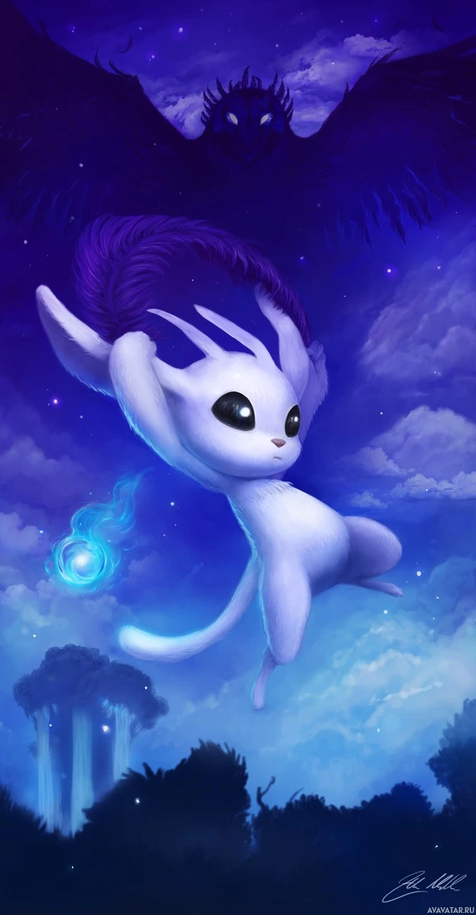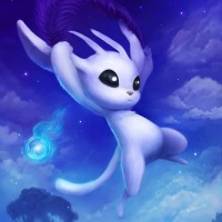 This is an image of a stylized, animated character that resembles Ori, a protagonist from