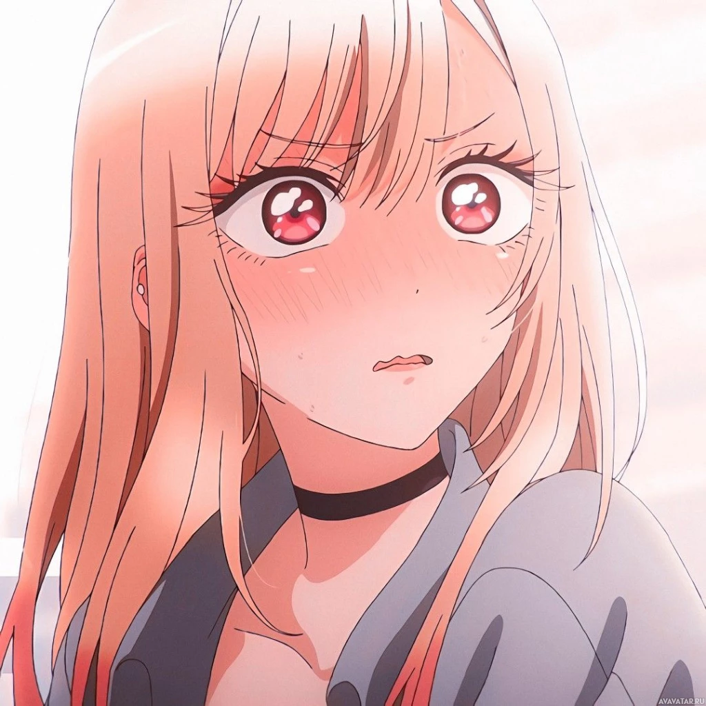 На картинке изображен персонаж из аниме, изображаемый как девушка со светлыми волосами и красными глазами. Она одета в черный наряд и, кажется, находится в середине крика или удивления, как предполагает ее выражение лица и румянец на лице.