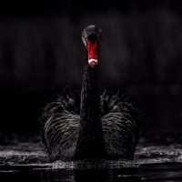 The image shows a bird, specifically a swan or goose, with distinctive features such as a black body and