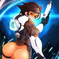 an animated character that appears to be a female from the game "Overwatch." She is depicted in a pose that suggests she is ready for combat, as indicated by her armor and weapon. The style of artwork is reminiscent of the "Overwatch" game's