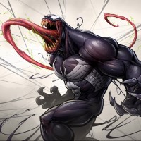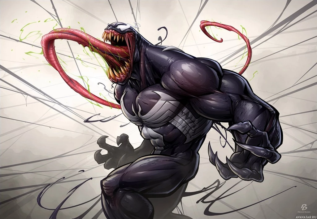 The image shows an illustration of Venom, a popular comic book villain who is also known as