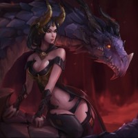 the fiery surroundings. This image likely belongs to a genre of artwork related to fantasy or role-playing games.