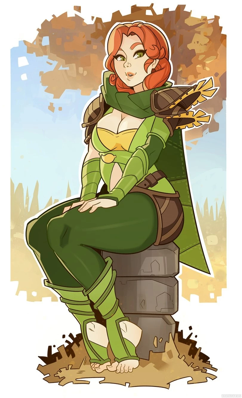 the video game Dota 2. This character is known as Windranger, and she is depicted wearing her signature