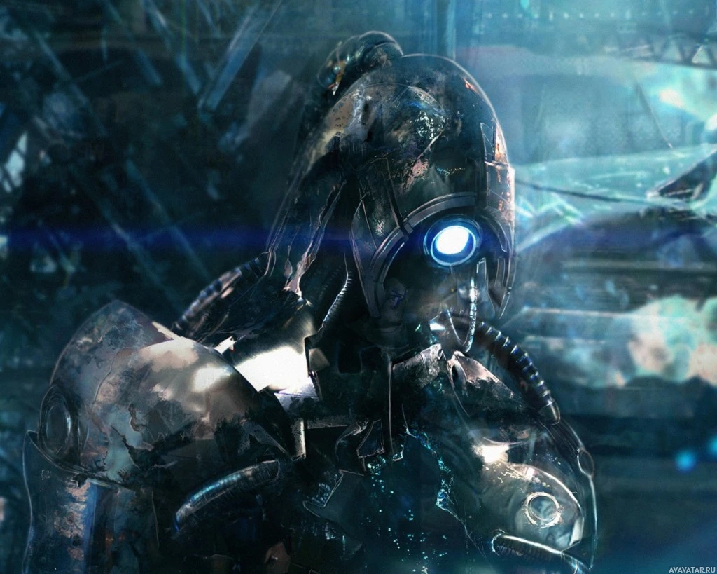 the video game "Mass Effect," specifically known as Legion. This character is an artificial intelligence in the form of a robotic body that has been infused with
