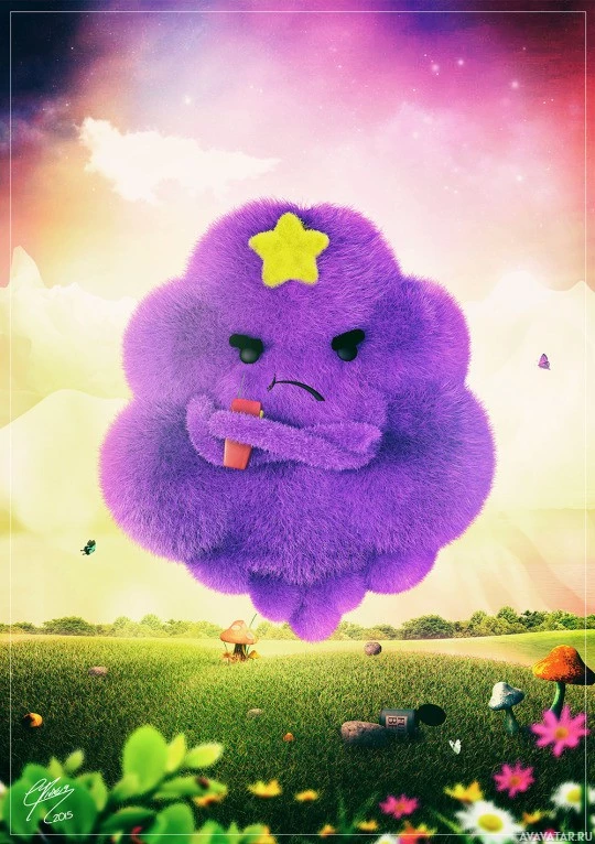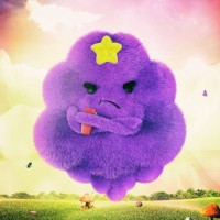 an emotional state with a somewhat sad or melancholic expression. Surrounding the character are whimsical elements typical of the show's