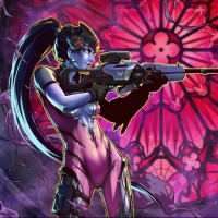 the video game "Overwatch." This character is Widowmaker, known for her