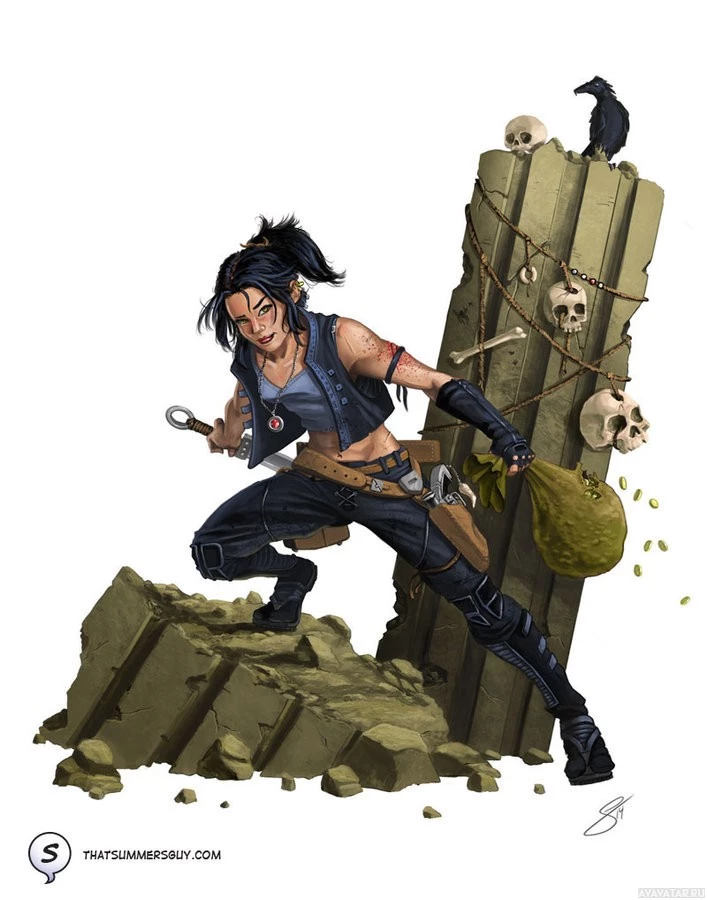 This is an illustration of a character that appears to be from a fantasy or adventure theme. The character is a female with