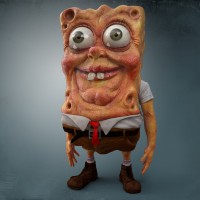 На картинке показана 3D-модель Губки Боба SquarePants, персонажа из анимационного телесериала. Эта конкретная версия, кажется, разработана в реалистичном стиле с преувеличенными функциями, что придает ей несколько тревожный или искаженный внешний вид по сравнению с типичной формой анимации.
