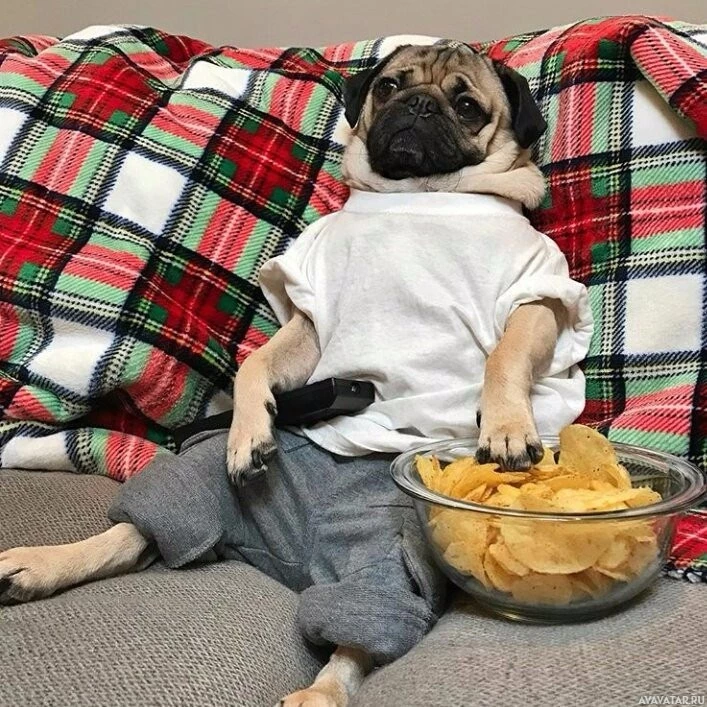 a white shirt on and its paws are in a bowl of chips, giving the impression that it's enjoying a casual snack time. The background suggests a cozy