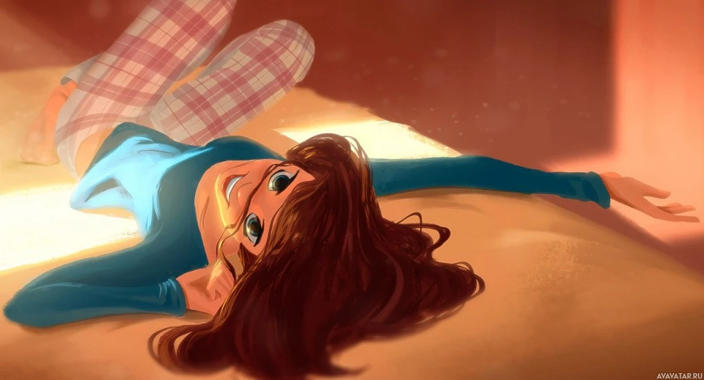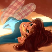 a young girl lying on her back with one arm outstretched. She has