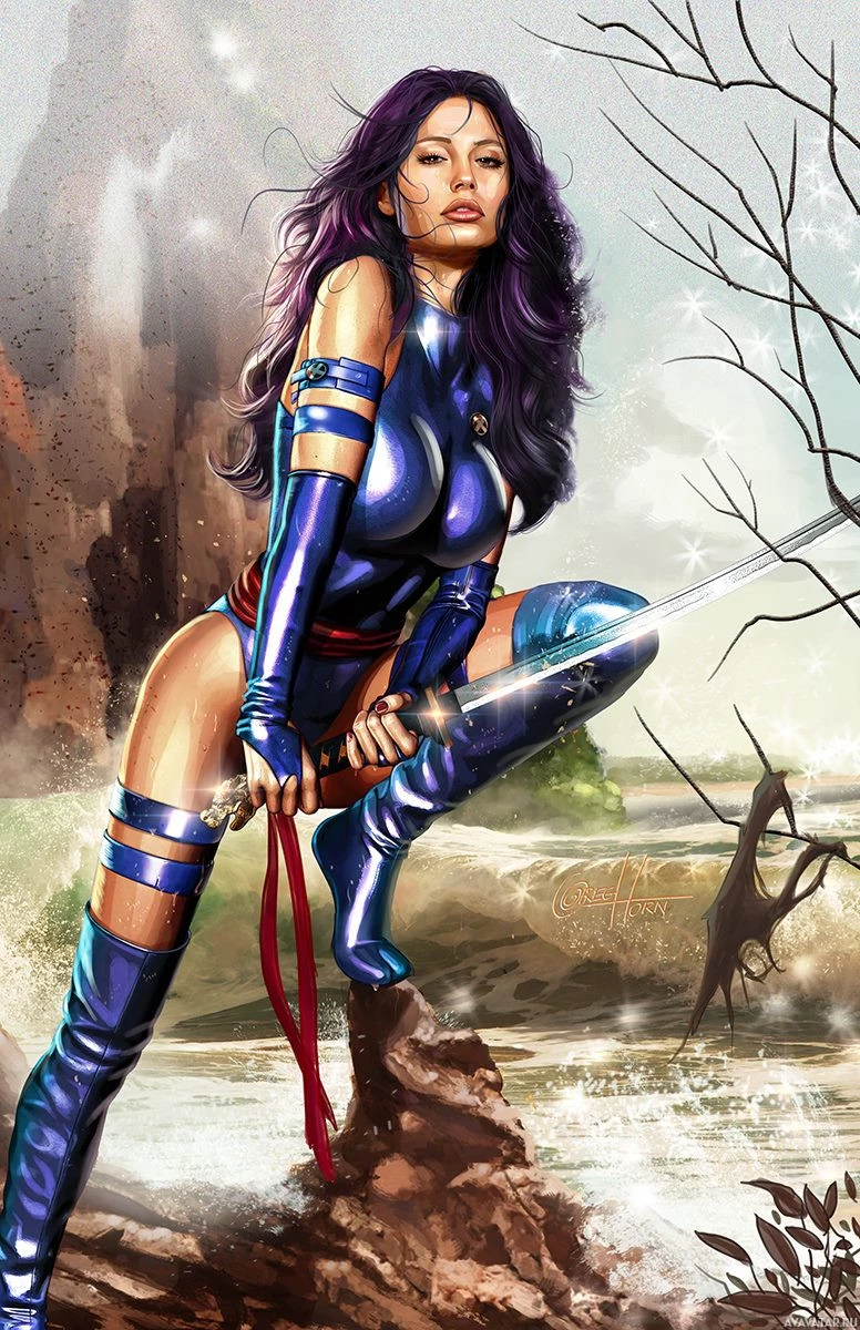 a dynamic pose, suggesting she might be engaged in combat or an action-oriented scene. The background appears to be