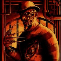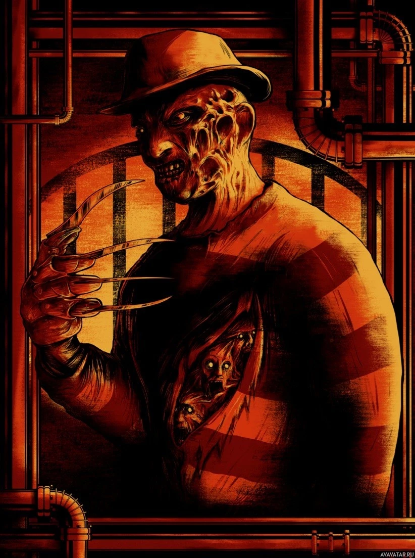 Freddy Krueger from the horror film series "Nightmare on Elm Street." He is shown with his iconic knife glove extended and wearing