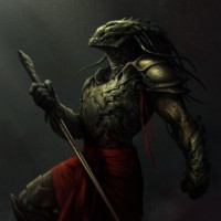 the fantasy genre, possibly inspired by mythological or ancient warriors. This character is holding a sword and appears to be standing in front of