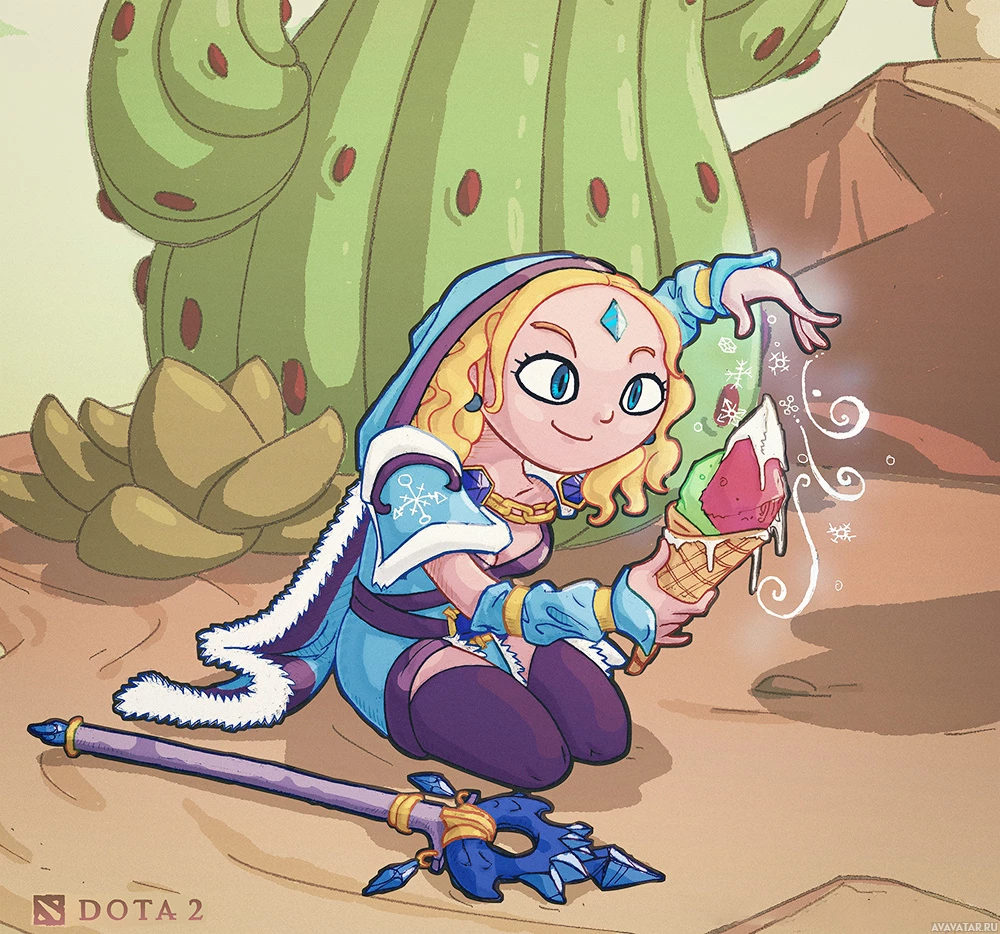 the video game "Dota 2," specifically Crystal Maiden. She is depicted as