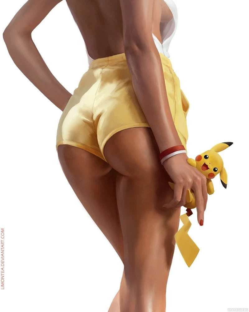 a yellow top that matches the color scheme of Pikachu. It's important to note that this is a piece of artwork, not an actual photograph or scene.