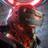 На картинке изображен персонаж из жанра научной фантастики, одетый в шлем и, вероятно, какая-то футуристическая или кибернетическая броня. Этот персонаж, по-видимому, является частью передовой технологии, возможно, связанной с исследованием космоса или боем, учитывая элементы дизайна, видимые на костюме.