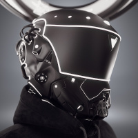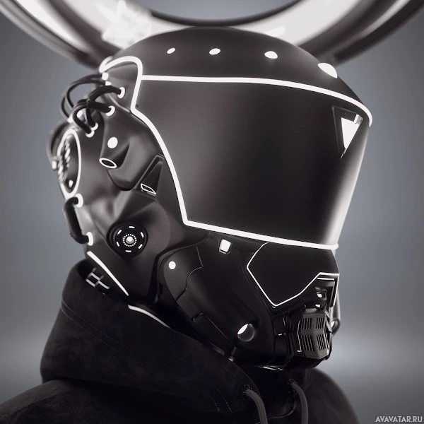 a futuristic design with integrated technology, possibly for communication or environmental protection. This type of helmet is often associated with characters in science
