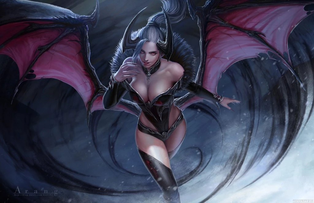 The image depicts a fantasy-themed character that is often associated with succubi in mythology and