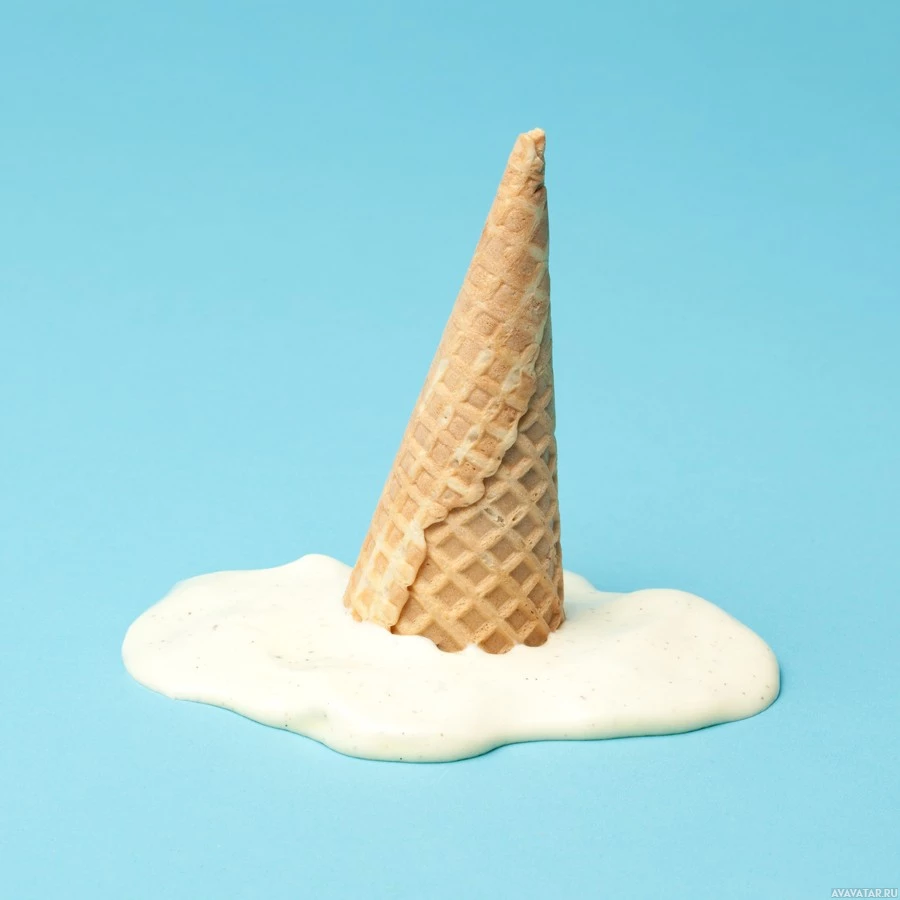 На картине изображен конус мороженого, помещенный вверх ногами в бассейне, который выглядит как сироп ванильного или карамельного цвета. Эта установка создает иллюзию, что конус мороженого тает или подается в качестве десерта. Использование небольшого количества сиропа и расположение конуса мороженого придает ему причудливый, плавящийся вид.