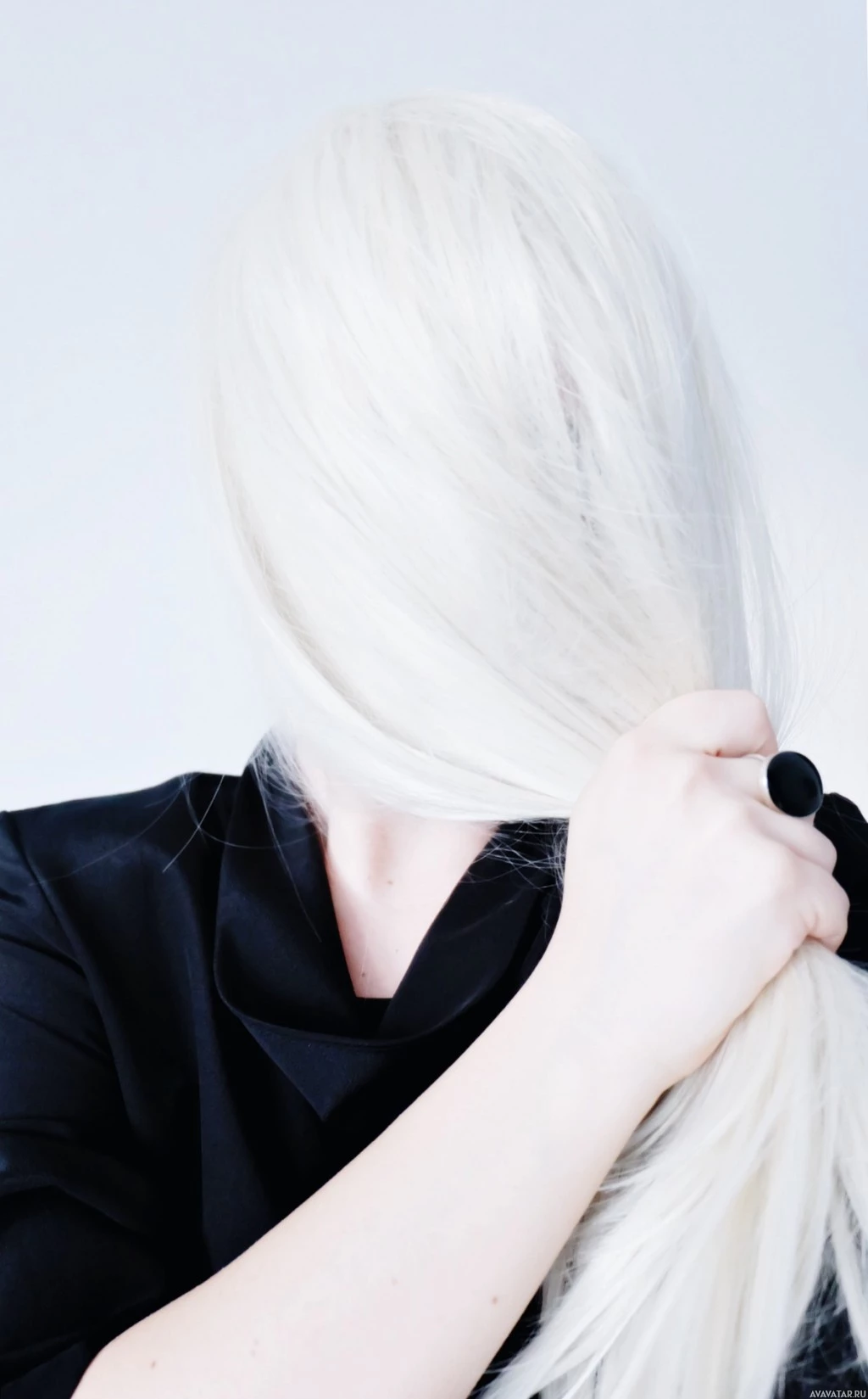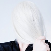 The image shows a person with light-colored hair, possibly blonde, wearing